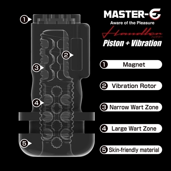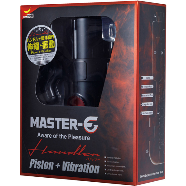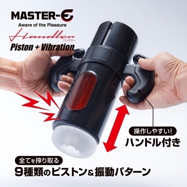 単純な機能だけではなく、持ちやすくストレスフリーで遊べる電動セルフケア・ガジェットの登場です。 このハンドラーは振動とピストン機能を搭載した電動セルフケア・ガジェットです。 全体を包み込み上下に揺れることで官能的な刺激を与え、小刻みに震えることで快感を増幅させます。 全9種類の振動・ピストンパターンを搭載しており、お好みの官能を得られることでしょう。 またハンドルが付いており、持ちやすさが大幅にアップ!ストレスなくプレイを体感することが可能です。 ホール部分には人肌に近い弾力素材を採用し、使用感は抜群。 またホールと本体を簡単に分割することができるので、使用後はホールを洗浄し、清潔さを保つことができます。 便利なUSB充電式を採用し、およそ60分の充電で、60分間の使用が可能です。 ストレスなく、気軽に、ピストン&振動を楽しむことが可能なMASTER−Eハンドラー。 電動セルフケア・ガジェットの新たな地平をお楽しみください。 ![]() --![]() --