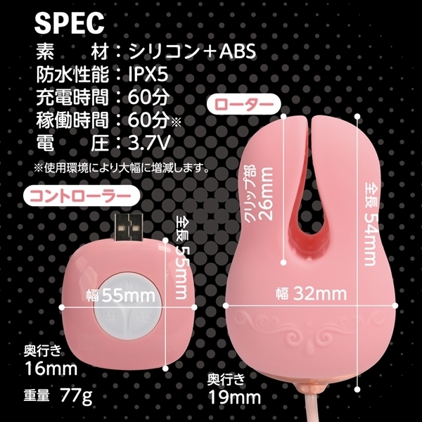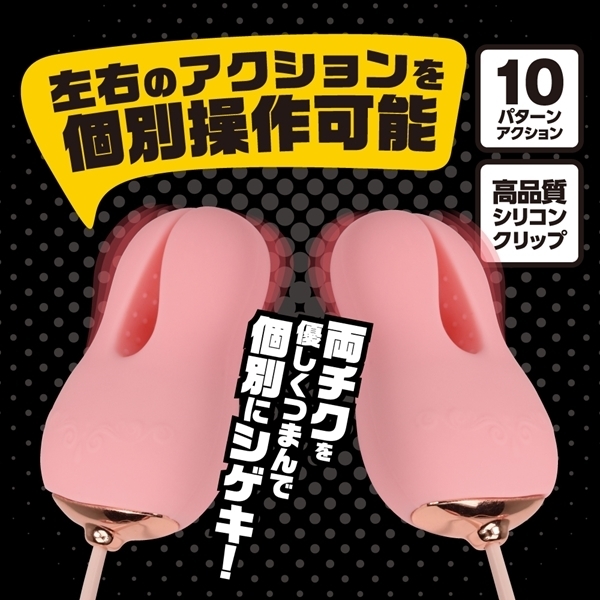 ![]() 左右それぞれ独立したアクションが楽しめる乳首ローター♪左右で異なる感じ方に合わせ、振動の強さやパターンを個別に調整可能です!クリップ部分には肌触りにこだわった高品質シリコンを採用し、優しくしっかりと摘む感覚が心地よいです♪コントローラーは直感的に操作しやすい3ボタン式で、好みの10パターンから振動を選べます!IPX5の高レベル防水性能で、しっかり洗えて衛生面も安心♪60分の充電で最大60分連続使用が可能です!