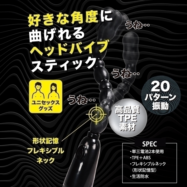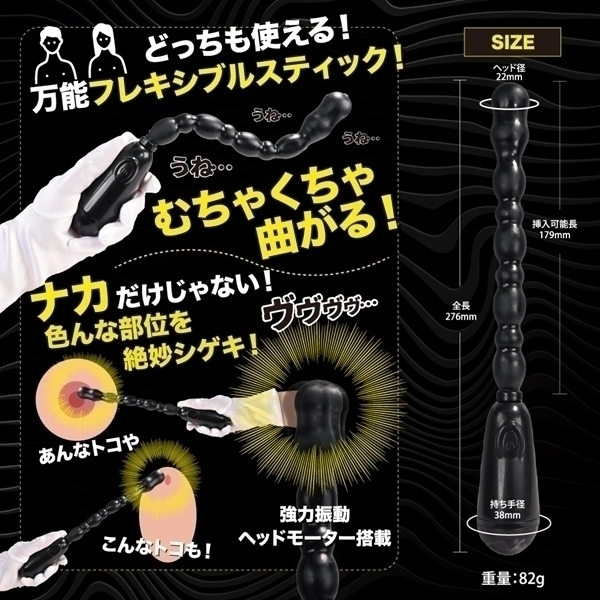 ![]() 形状記憶機能を持ったユニークなバイブスティックです♪フレキシブルな設計により、お好みの形状に調整して使えるため、使いやすさと自由度が高いのが特徴!ユニセックス仕様で、さまざまなシーンで活用できる便利なアイテムです♪振動パターンは20種類あり、多彩なバリエーションを楽しむことができます!高品質エラストマー素材を採用し、使うたびに快適な使用感を提供♪ストレス臭カット仕様で、清潔感を保ちながら安心して使用できます♪どんな場面でも頼れる、しっかりした振動を実現するアクションスティックです!