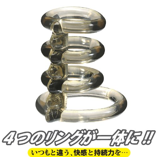 ![]() 新しい刺激と快感に出会える!男根をしっかりと締め付け、持久力アップを強力にサポートする4連リング仕様の男性補助グッズ。